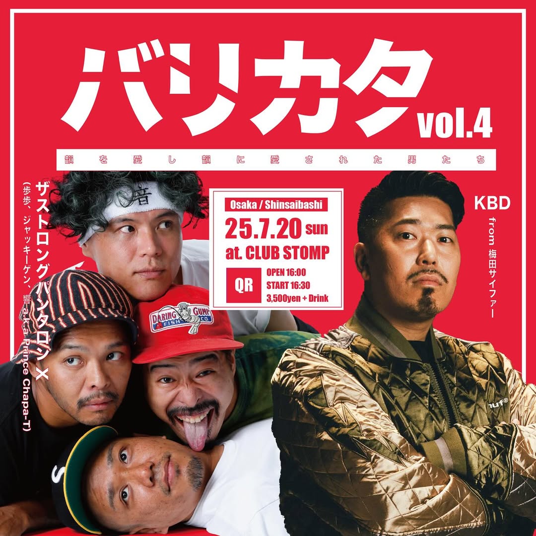 バリカタ Vol.4 〜 お前はもうすでに楽しんでいる 〜 Jul 20, 2025 CLUB STOMP Source バリカタ Vol.4 〜 お前はもうすでに楽しんでいる 〜 25.7.20(日) 16:00 OPEN 心斎橋 CLUB STOMP ¥3,500 + 1D LIVE KBD(梅田サイファー) ザ・ストロングパンタロンX (歩歩、ジャッキーゲン、響 a.k.a Prince Chapa-T)