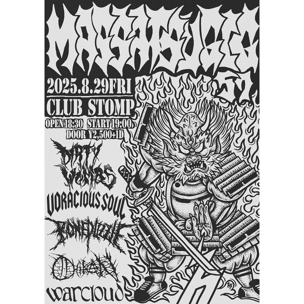 MASSATSU GIG vol.57 Aug 29, 2025 CLUB STOMP Source chikan MASSATSU GIG vol.57 8月29日(金) CLUB STOMP OPEN 18:30 START 19:00 DOOR ¥2,500+1d Dirty Wombs VORACIOUS SOUL BONEPAZZLE CHIKAN WARCLOUD