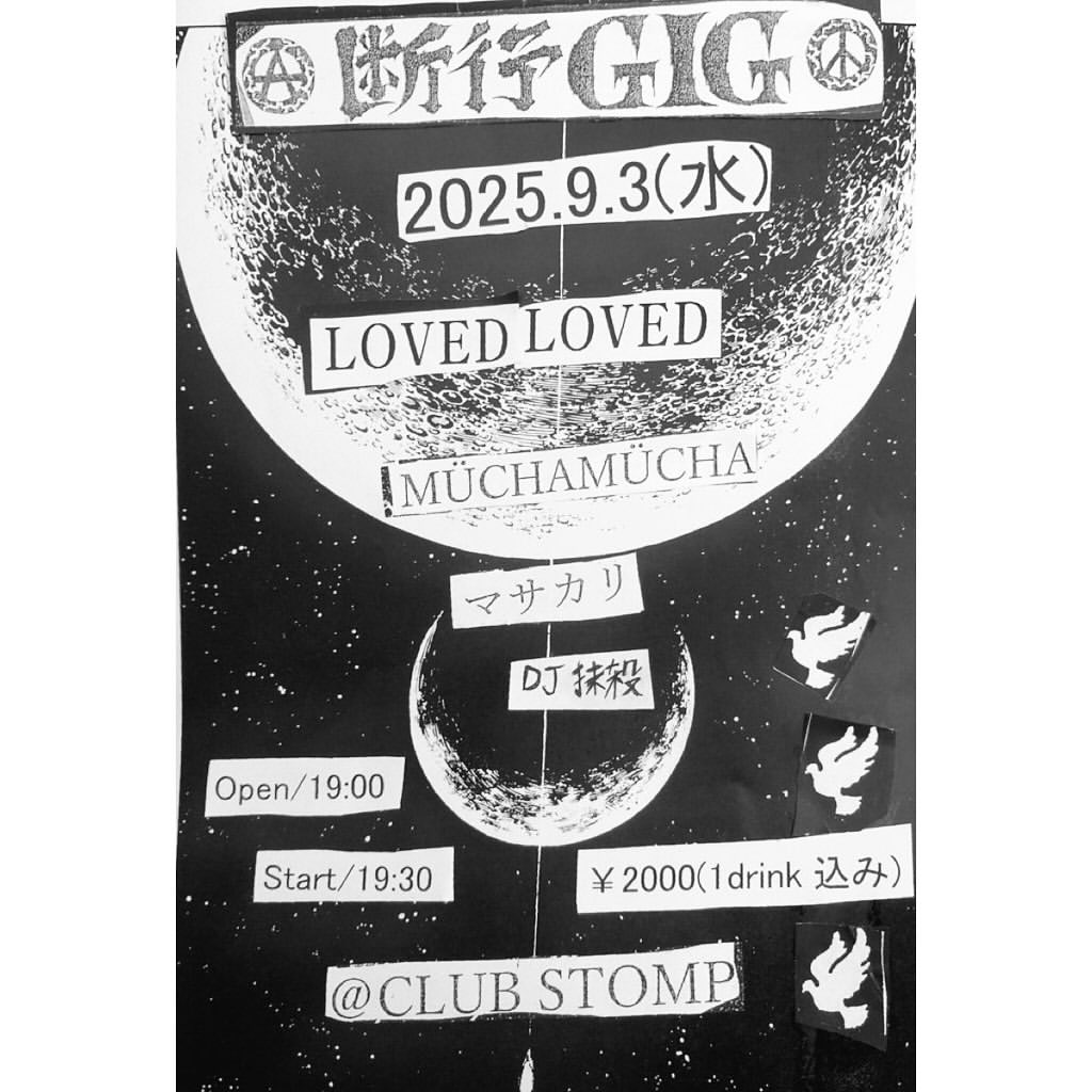 [断行ギグ] Sep 3, 2025 CLUB STOMP Source 2025/09/03(水) CLUB STOMP マサカリ presents [断行ギグ] LOVEDLOVED MÜCHAMÜCHA マサカリ DJ: 抹殺 19:00/19:30 2,000yen (1drink込)