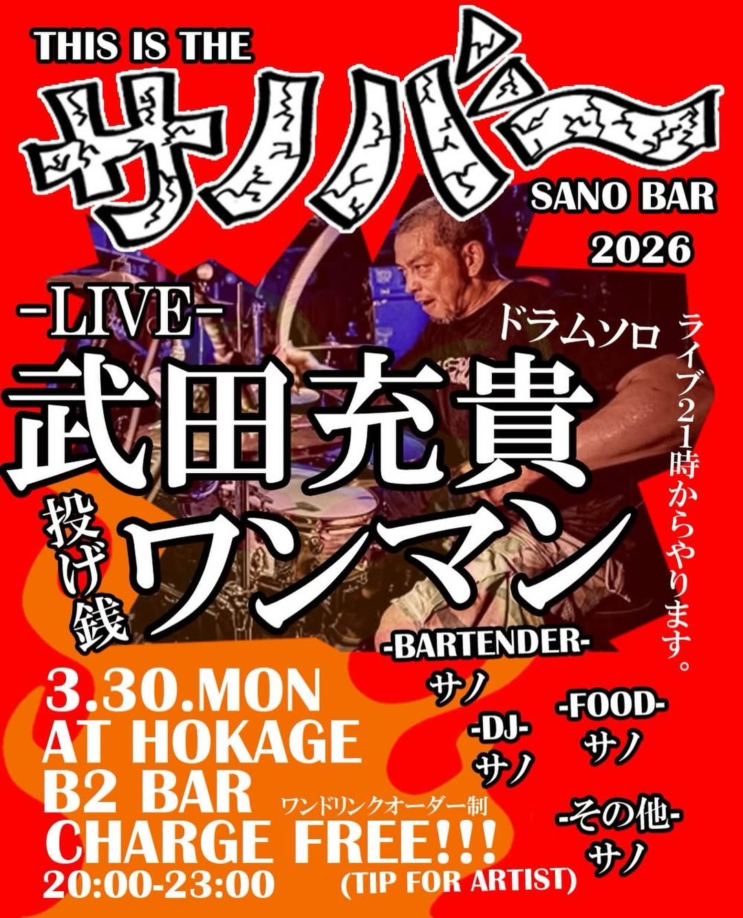 @mitsuki__takeda ONE MAN SOLO DRUM AT SANO BAR⚡️