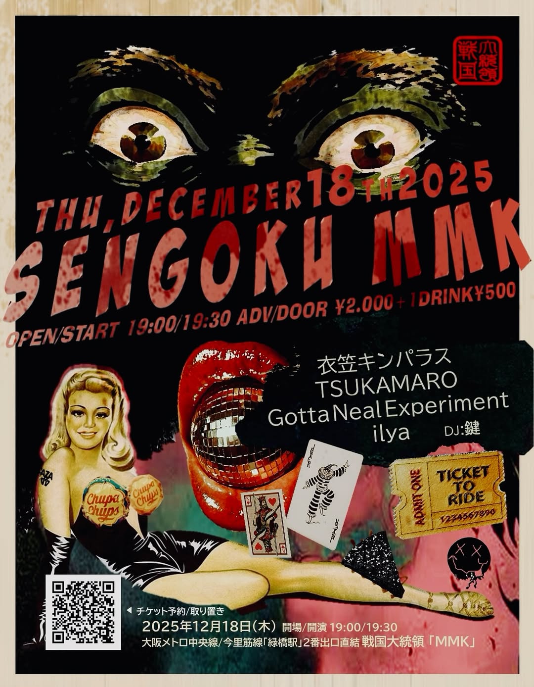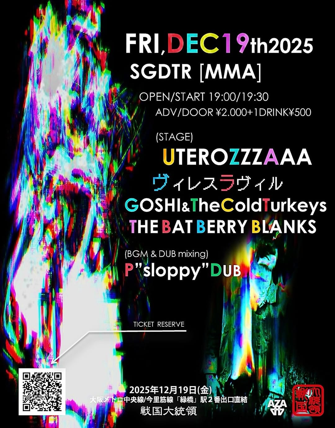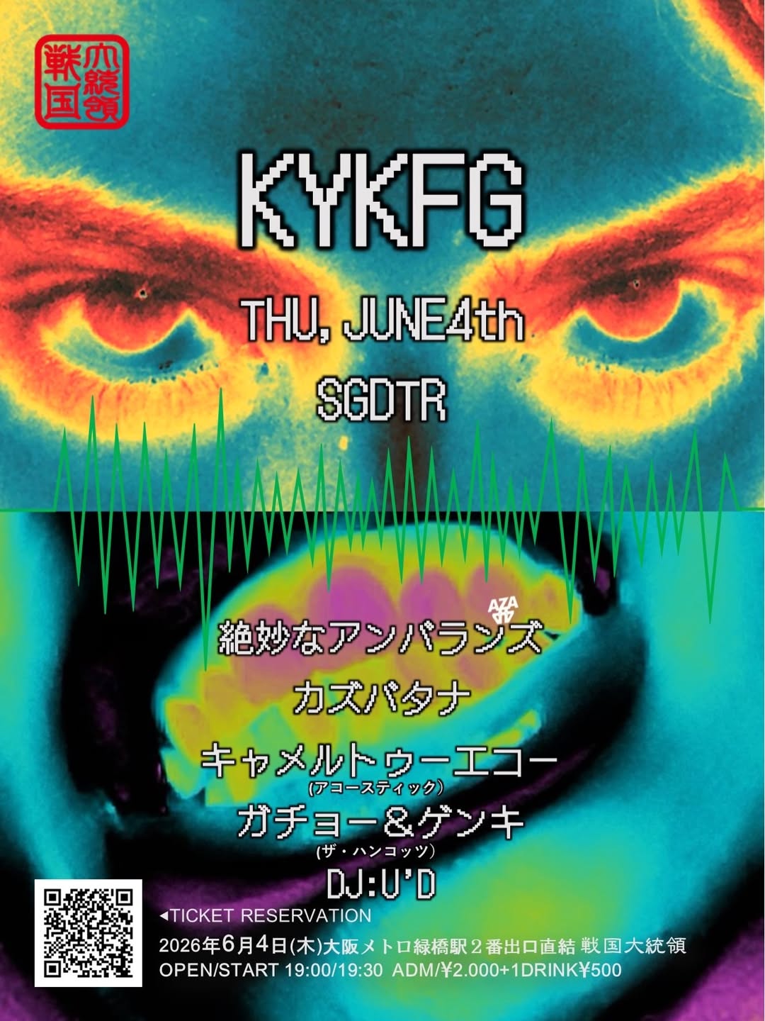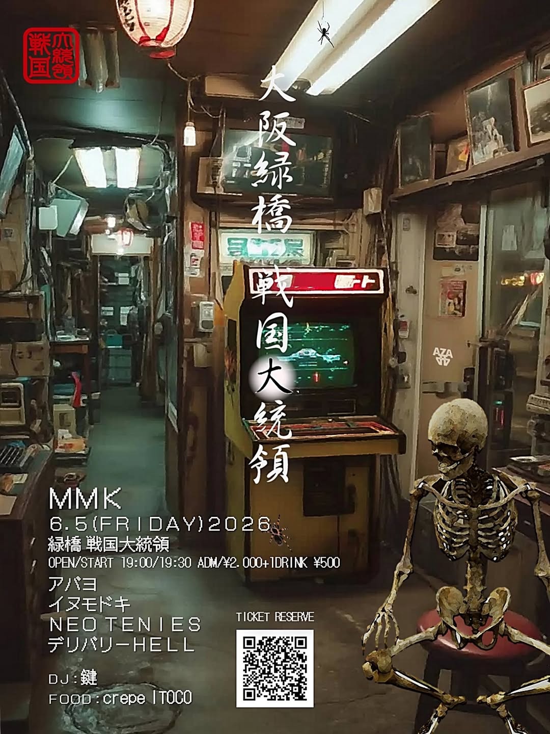 大阪メトロ緑橋駅2番出口直結、ライブハウス “戦国大統領”です!
